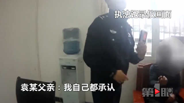 袁某的父亲说,自己在四川省大竹县周家镇的家中喝了酒。出门后,又在酒店里称了二两多散装白酒来喝。喝完,直接驾驶摩托车就来给儿子送行驶证了。