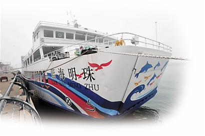 客,现在走上由轮渡变成的游轮 “蓝海明珠”,也几乎看不到曾经的渡轮影子,虽然整个船体并没有改变,但船舱内部却彻底变换了样式。原来简单的上下两层船舱,即上层乘人,下层放车的格局,现在变成餐厅、舞厅、吧台、会议室等休闲娱乐设施搭配组合的豪华游船。