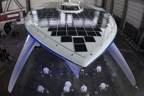 虽然“僧帽”设计距离现实还有数十年之遥,但另一个太阳能驱动的先进船只几乎已做好了下水的准备。“行星太阳”(PlanetSolar)是世界上最大的太阳能动力船,船长31米,原定于2010年4月开始环球旅行,后因故推迟,不过它确实在9月从德国航行到西班牙,并将在巴塞罗那接受进一步测试。