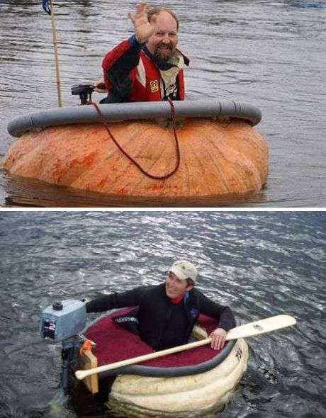 你或许认为,当希尔德布兰请求“仙女教母”送给他一艘新船,而非眼前这个南瓜船时,他一定非常失望。事实上,希尔德布兰是用760磅(约合345公斤)重的大南瓜制造了这艘奇特的独木舟,并且连续八天划着它为慈善组织筹款。虽然它看上去毫无科技含量,但令人吃惊的是,大南瓜充当了相对稳定的小船——甚至在德国城市路德维希堡,每年都要举办南瓜船赛舟会。