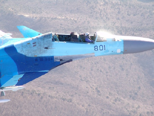 实拍苏-35UB无舱盖飞行