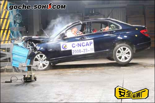 2008年10月30日下午2点,中国汽车技术研究中心碰撞实验室对北京奔驰-戴姆勒·克莱斯勒汽车有限公司生产的梅赛德斯-奔驰牌BJ7181A(C 200)型轿车(即奔驰C200K时尚型)完成了“正面40%重叠可变形壁障碰撞试验”。