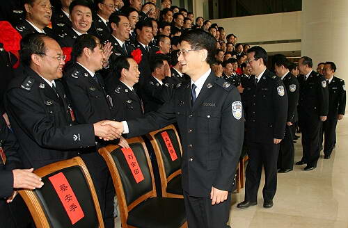 会前,孟建柱与公安部党委副书记、常务副部长杨焕宁,部党委委员、副部长刘金国,部党委委员、纪委书记祝春林,部党委委员、政治部主任蔡安季,部党委委员、部长助理黄明一同会见与会代表并合影。