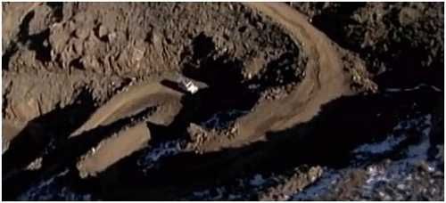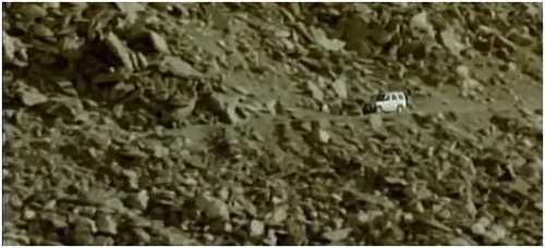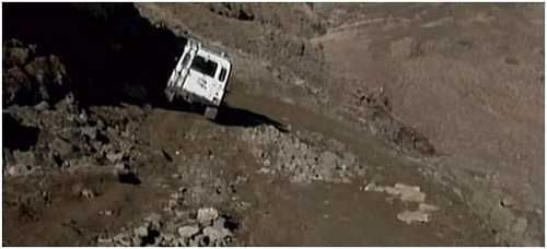 马许尝试继续前进。但车辆熄火了,因为光靠前轮动力,是无法上前面的陡坡的。在这里的路段,马许做了一个疯狂的举动:他使用倒车爬上这个很陡的弯道——因为这时前轮在下方,能承受更大的力量,车辆应当能得到更大的牵引力。