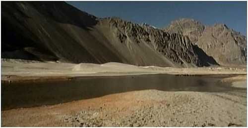 穿越努不拉峡谷时,接近印巴的战区。1947年,巴基斯坦和印度脱离英国统治,从此开始纷争不断。现在两个国家都拥有核能力。2000年美国总统克林顿称两国边境为世界上最危险的地区。通过印度陆军的北普路检查站之后,路况突然变得令人惊奇,有柏油路,甚至还有路边护栏。