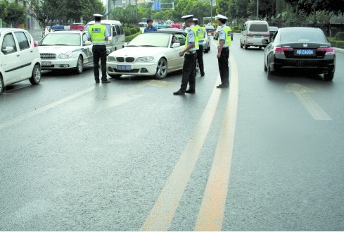 昨日上午9时许,绵阳交警直属三大队民警范强正在治平路附近执勤,而从芙蓉汉城到东津路都在进行交通管制,所有车辆按照规定正在等待放行。突然,一辆车牌号为川BAG789的白色宝马跑车驶进了交通管制区,并一路飞奔。范强见状,立即打手势示意司机停车检查。见此情形,司机不但没有停车,反而加速向芙蓉桥驶去。