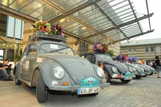 我最最喜爱的甲壳虫来北京了,太兴奋了太幸福了!一共五台老爷车甲壳虫,岁数加起来超过300岁,千里迢迢的从德国开来北京,说是也来庆祝新中国的60华诞!我一直在关注这个超龄车队的进程,路途中的亮点还真不少!