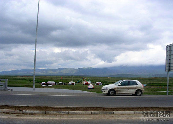 乌云压头,不免暴雨。青海的天气很容易辨识,乌云下就是雨,一出乌云就是晴。于是不断的一会晴一会雨。不过这一次的超特大暴雨,让我领教了厉害,已经完全没有能见度可言,只能打着应急灯停在路边,就是这样,还是但心后面的来车看不到应急灯而追尾。幸好路过的车并不多。雨打在车顶震耳欲聋,似乎打穿车顶是分分钟的事,真的有这种错觉。车窗外除了水还是水,就跟车掉进了湖里似的,想象着四周是茫茫戈壁,只有我们和派派孤独的停留在无人知晓的地带,竟然有一些慌乱。默不作声(就算说话也根本听不清楚)的看着前面,其实没有前面可以看。车内空气开始憋闷,更加烦躁,只有等待。幸好如此暴雨只有20分钟,老天开眼啊,迫不及待打开窗,那冰凉清冽空气涌进来,不由自主打了一个冷战。