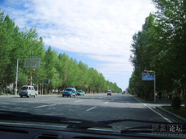 葱郁的格尔木街道两旁种满了挺拔的白杨,在自然条件恶劣的荒漠间方圆400公里无城市的孤独的格尔木,变成这样的绿洲是50多年人们的努力。