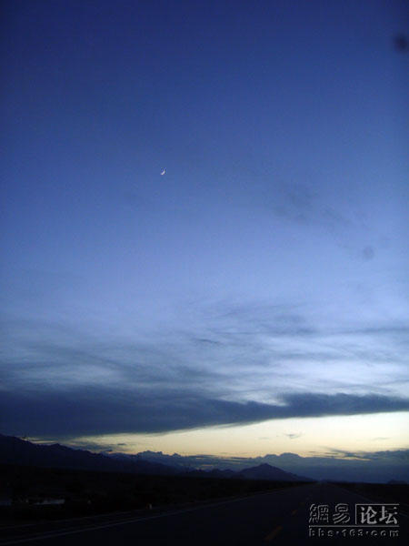 另外有趣的是临近格尔木,会的车开始多起来,我看到来车近了就关了远光灯,对方也关,开了一小会,没相会,又看不清路,便有打开,对方也打开,又觉得该到了,有关了,对方也关,还没到,又开。。。如此往复。相当纳闷,直到开了起码50公里以上,我们才真正的相会了。能见度太高了。后来有了经验,看到来车,开个半小时才差不多才会相会。特别是看到格尔木在荒漠中辉煌的灯火,直到开进城,足足花了一个小时。