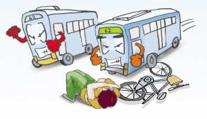 扬子晚报5月25日报道  “这样你追我赶,肯定要出事!”南京市民马先生在一辆62路公交车上坐着,实在是心惊胆战,他一边紧紧抓着座椅,一边在心里嘀咕着。这句话很快就得到了验证,两辆62路公交在马路上“比拼”起来,结果其中一辆公交借左转直行试图超车,不慎撞上了一名正在过路口的骑车人,致使其颅骨骨折,脑组织挫裂。这是前不久发生在南京街头的一幕,目前,交警部门已认定肇事公交车驾驶员负事故的全部责任。
