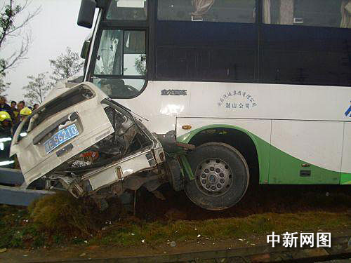 浙江安吉县发生两车相撞事故 近40人被困
