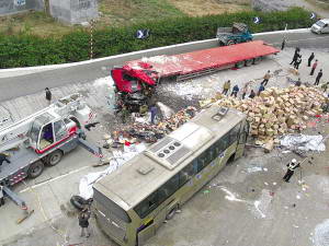 事故发生后,自治区党委、政府高度重视,自治区主席马飚作出批示,派自治区政府副秘书长郭文强率自治区工作组协调河池市全力抢救伤员,做好善后处理和事故原因调查工作。目前,伤员已全部送往都安瑶族自治县人民医院进行抢救,事故原因正在调查中,相关善后处置工作正在有条不紊地进行中。 大客车与大货车相撞 4日上午11时许,仍有大量工作人员在清理事故现场。两辆事故车已被猛烈的撞击损坏得看不出原貌:大货车的车头严重变形,已经扭曲成一堆废铁;大客车左侧的铁皮被完全撕开,露出内部一排排的座椅。两辆事故车撞击所产生的玻璃碎片、零件,以及车上所载的货物、行李散落一地,血迹随处可见,事故现场一片狼藉。 事故发生地附近一间小卖部的老板韦某是第一报案人,他回忆说:“当时我正靠在躺椅上打盹,突然"砰"的一声巨响。我跑出店门口一看,两辆大车已经撞在了一起,车子的周围横七竖八地躺着好几个人。”随后,韦某立即拨打了120和110。他说:“过了一会,一些受伤的人从大客车上下来,有些人满身是血。我赶紧拿纸给他们止血。事故当时的场面太恐怖了,我想起来都觉得害怕。” 积极救援被困人员 据了解,消防部门在接到报警后也立即前往现场进行救援。当时,大货车上有3人,2人被困,其中一名被困人员的上方堆积着大量货物,随时会坍塌造成二次事故。消防官兵对被困人员进行保护,利用梯子、木棍搭建一简易支架,转移上面的货物之后,立即利用破拆工具施救。 由于撞击猛烈,现有的救援装备不能将变形的车头弄开。消防官兵联系交警部门对大客车进行转移,腾出空间,利用其他车辆来牵引、扩张。转移大客车后,救援人员先用牵引车对后座位置进行牵引,再用起重车的起重臂顶住事故车变形的车顶,牵引扩大空间后利用扩张器对挤压部位再进行扩张,顺利将被困者救出。之后,救援人员如法炮制,将死亡人员的遗体挪出。 整个救援工作一直持续到4日上午7时22分才结束。 有关部门安排善后 事故中的伤员被及时送往都安瑶族自治县人民医院救治。乘坐大客车前往深圳探亲的乘客蔡远琴称,事故发生时,车内几乎所有人都在睡觉。她说:“我是被剧烈的撞击和响声吓醒的,醒过来的第一反应就是抱紧身边的女儿。当我回过神的时候,看到客车里好多椅子都掀了起来,一些人躺在过道里已经不行了。”她把孩子递给先行下车的一些乘客后,忍着背部的剧痛慢慢下车。 蔡远琴在深圳的丈夫任鑫城得知妻子出车祸后,立即赶到都安。看到她们母女平安,任鑫城流下了激动的泪水。他说:“感谢当地政府对我们的关怀,他们的救援工作及时,才使得我们伤者家属安心。” 在医院住院部门前,有一处交通事故接待点。4日下午4时许,都安民政局工作人员韦英球表示,她是从凌晨5时开始在此值班的。她说:“我的任务就是接待得知消息后赶来照看伤员的家属,以及安排伤员们的饮食等各类问题。”她说,截至下午4时,23名伤员中只有一名伤员的家属赶到。目前,民政部门已经了解清楚所有伤员的家庭住址,将尽快想办法与他们的家属联系。 事故原因尚需调查 据了解,两辆事故车辆中,大客车为四川省南充市某运输集团的客车,目的地为广东省深圳市。而大货车则悬挂豫P牌照。大客车上大部分是前往深圳打工的四川籍乘客。由于两车的司机都已死亡,事故发生时,几乎所有乘客都处于睡梦当中,因此,事故原因仍然在调查之中。有关部门初步认定,其中一车为躲避过路的一位行人,引发了事故。 事故发生后,各级政府高度重视。自治区党委、政府成立了“1·4”外省过境特大交通事故处理工作领导小组。 目前,当地政府已经发函四川省南充市顺庆区人民政府,要求对方督促相关单位尽快派员前往处理善后工作。同时,7名死者遗体已经送往河池市殡仪馆存放,23名伤者也已经得到了有效的治疗。 |
