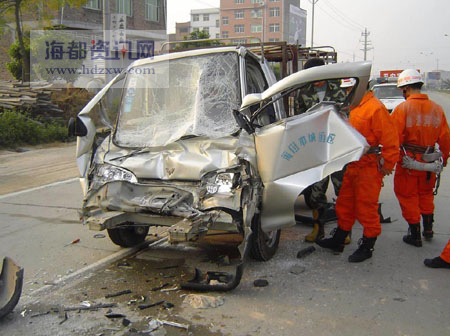 司机睡梦中踩下油门 小汽车被撞变形(图)