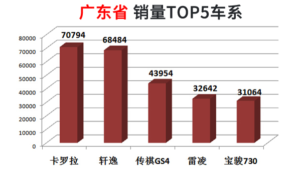 广东是日系的大本营,所以日系车居多不难理解,卡罗拉的销量占到全国的接近三分之一。传祺GS4也是广汽的热销SUV。广东的民营经济发达,能拉快跑的宝骏730很适合用来载人拉货使用。广东省没有一款大众车型进入TOP5,大众的南方战略看起来效果不甚明显