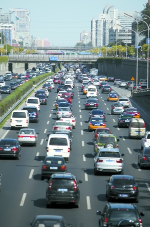 昨日下午2时,北四环路段保持通畅,晚高峰提前至下午3时。本报记者 浦峰 摄