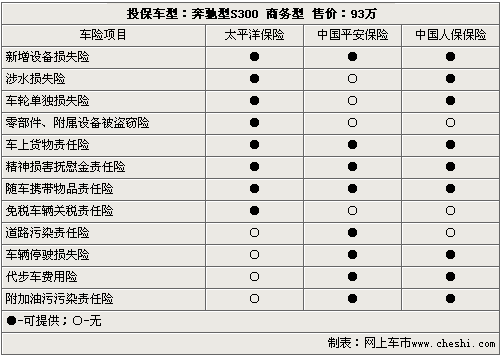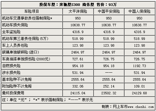 奔驰新S级轿车继上海车展全球首发后已于日前正式上市,全系8款车型售价为93万元-259.8万元。那么在购买奔驰新S级轿车后,其保险又将如何选择呢?下面我们将北京地区太平洋(601099,股吧)、平安、中保三家保险公司对奔驰新S级轿车入门车型的投保费用进行详实解析,以便为您购车提供一定的参考。 一、主要险种及附加险种费用 在太平洋、平安、中保等三家保险公司的保险项目里,机动车交通事故责任强制保险是一项强制保险项目,并且价格统一为950元整。除此之外,三家保险公司的车险项目基本保持一致,但相应的费率存在一定的浮动,其中中国平安(601318,股吧)保险的报价最低,中中国人民保险的报价最高。另外,在机动车第三者责任险中,消费者除了可以选取5万保险额外,还可以选择10万、15万、20万元保额等。而在车身油漆单独损伤险(常说的划痕险)方面,消费者也可以选取更高的保额如5000元、10000元不等。由于新车在第一年里属于汽车厂商的保修范围之内,所以自燃损失险可以不上。值得一提的是“不计免赔”这个险种,购买这个险种的最终的是消费者出险后保险公司可以百分之百的赔偿,反之则只能按照比例部分赔偿。 若通过官方授权的保险代理机构购买车险,可在原保单的费用的基础上获得不同折扣的价格优惠,但要分清是否为官方授权的代理机构,最好的核实方式就是拿到保单后拨打该保险公司的客服电话查询真伪。 二、可提供的特殊保险项目 三家保险公司在提供基本险种之外还可提供不同的附加保险,并且考虑的更为周到与人性化。各家的附加险种基本都考虑到了各种实际可能遇到的出险状况,并且三家保险公司的附加险差别也较为相近,最终还是要看消费者如何选择自己需要的特别险种。如:涉水损失险、车轮单独损失险等险种对部分车主还是十分有用处的。 三、投保后所提供的服务项目 消费者在购买车辆保险获得车辆安全保障的同时,各保险公司还提供了额外的免费服务项目。对于经常在城区行驶的消费者,选择提供五环内车辆故障免费拖车以及应急送油服务的保险公司则能带来许多便利;若消费者喜欢经常外出跨省自驾游,则选择可异地定损、理赔的保险公司。各保险公司提供了丰富的附加服务,使得消费者有了更多样的选择,相较而言中国人保提供的人性化服务并不是很多。比较遗憾的是这三家保险公司在维修期间均没有为消费者提供代步车的服务。 经典的三角形一体式头灯依然出现在奔驰新S300车型上,但LED元素和日间行车灯的应用不仅更加时尚而且提升了安全性能。尾部的LED一体式双C尾灯,与前脸LED灯组相呼应。除此之外,左右大尺寸双尾排设计,也较老款车型更加动感。 奔驰新S级轿车融合先进通讯科技及人体工程学设计的驾驶室管理及数据系统,将蓝牙技术与车载通讯系统有机结合,给予驾驶者随时随地进行商务会谈的便利。HDD一体化硬盘导航系统以常规光盘导航系统20倍的数据读取速度,加上独特的中文语音播报功能,为驾驶者迅速确定行驶路线赢得宝贵时间。 |
