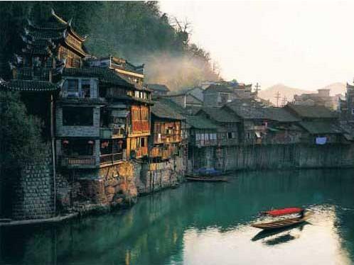 爱情关键词:南华山、吊脚楼、石板街 与钢筋水泥的大都市相比,凤凰这样的古朴小镇才是催生浪漫的温床。悠闲地踩在石板小路上,清亮的沱江水、翠绿的南华山、成排的吊脚楼、古朴的石板街近在眼前,伸手可触。此时透过天人合一的如画美景,身着花朵图案长裙的姑娘远远翩翩而来,令人怦然心动。