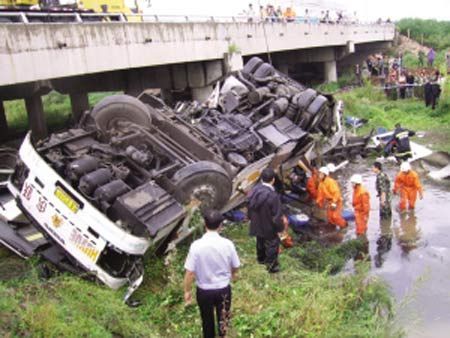 吉林载30名乘客大客坠桥 重伤5人幸无死亡(图)